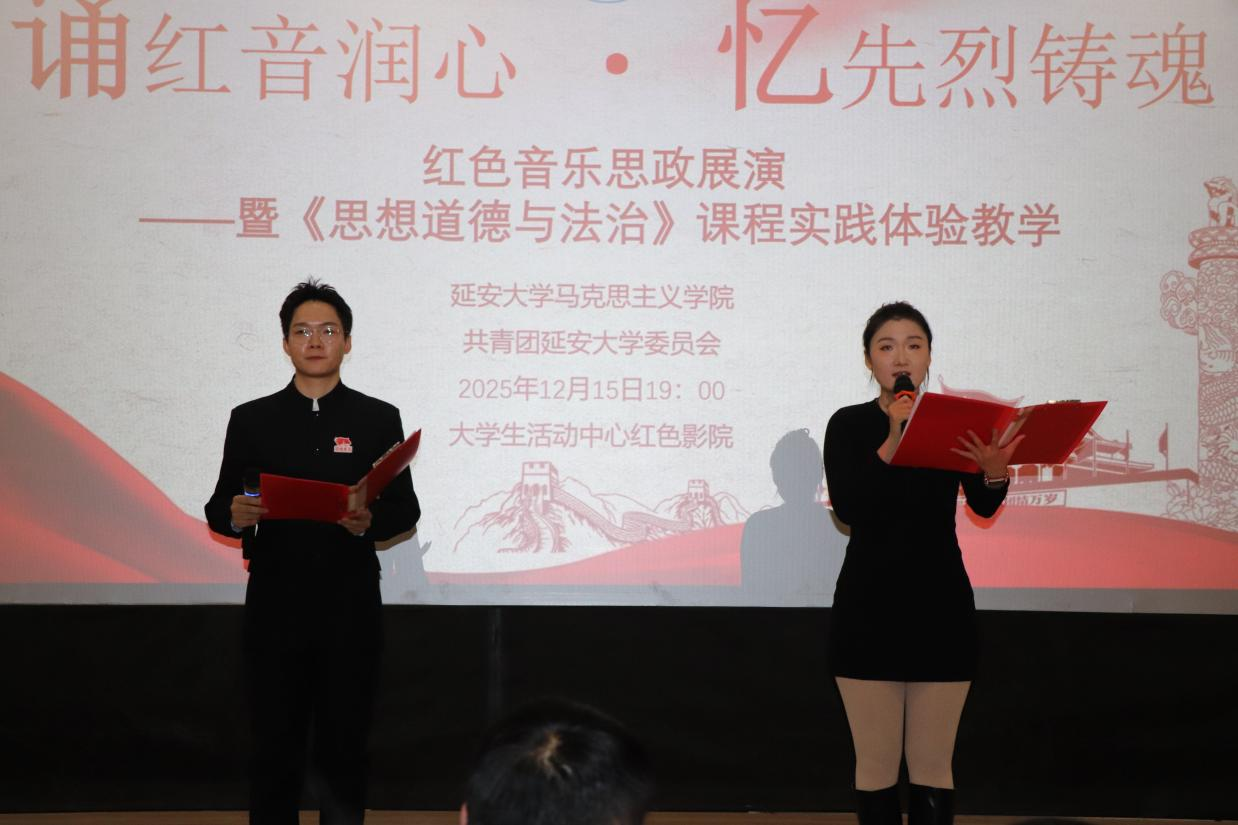 12月15日19时,延安大学大学生活动中心红色影院内。以“诵红音润心·忆先烈铸魂”为主题的红色音乐思政展演暨《思想道德与法治》课程实践教学活动精彩启幕。本次活动由太阳城博彩(中国)官方网站