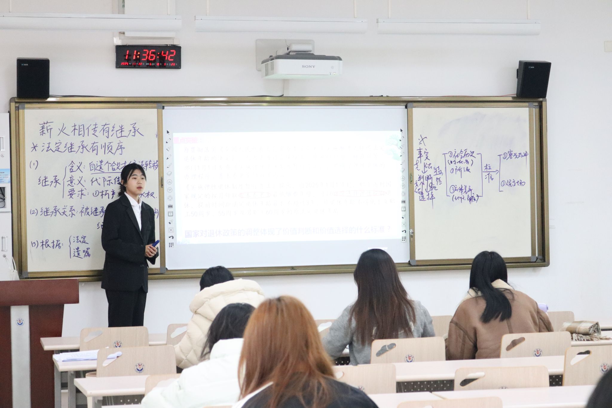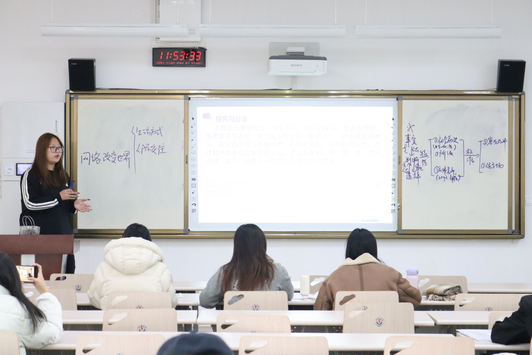 思政25级分两组分别于11月22日上午和下午在2101教室举行了教学技能实操大比拼活动。马克思主义理论和学科教学(思政)部分硕士研究生全程参与指导。活动由思政25级于欣冉同学主持,全体同学全程参与。