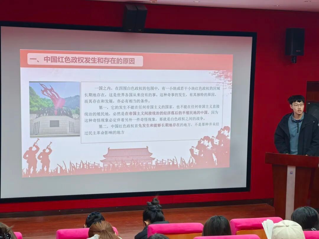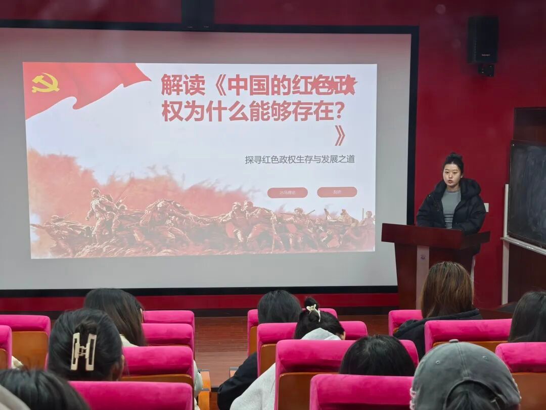 一楼报告厅举行经典著作带读系列交流会。本次交流会聚焦《中国的红色政权为什么能够存在?》,由马克思主义理论专业硕士研究生赵妍、张奥琪“带”,思政24级本科生“学”。